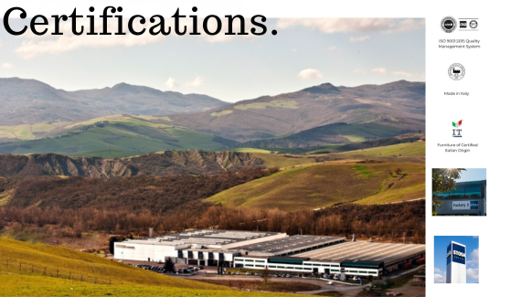 ใบการันตีว่าสินค้านั้นถูกออกแบบ ผลิตและได้รับการบรรจุภัณฑ์ตามเป็นไปตามกฏหมาย ที่เคร่งครัดด้านแรงงาน สิ่งแวดล้อม และความปลอดภัย รับรองความคงทนสินค้า ตามกฏหมามประเทศอิตาลี และผลิตในอิตาลี 100%
